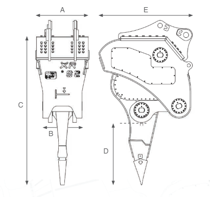 | Gewicht des BaggersRipper | T | 18-23 | 24-32 | 32-40 | 40-55 | 55-70 | 70-90 | 100-140 |